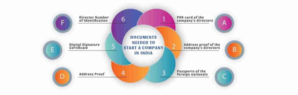 PAN card of the directors of the company Address proof of the directors of the company Passport of the foreign nationals Proof of the registered Office Digital Signature Certificate Director Identification Number